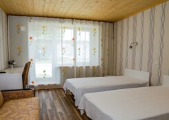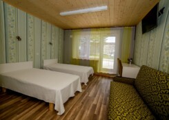 We have six twin rooms and one double room. Each room has two separate beds and a convertible couch that can be used as an extra bed.