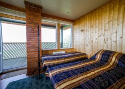 On the ground floor of the tower there is a toilet, sauna with anteroom (including a cooking corner), shower. The tower ground floor can accommodate up to 6 people (there are no sleeping berths on the ground floor).